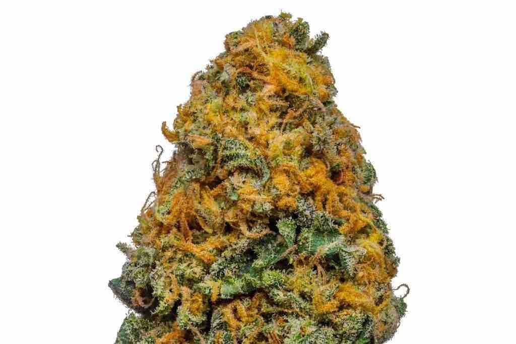 The White Cheese cannabis strain has an undeniable bag appeal, with nugs that are stunning to look at, lots of orange pistils, and a generous coating of resing.